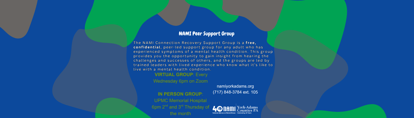 Together with both our state office, NAMI Keystone, and our national office, NAMI York Adams Counties PA provides advocacy, education, support and public awareness so that all individuals and families affected by mental illness can build better lives within our community.We partner with many local businesses, churches, and other organizations to address the needs of our community relating to mental illness.